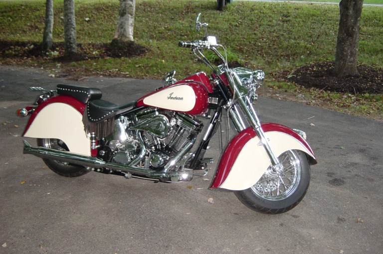 An Indian Chief- I have always liked the look of the 48-53 Chiefs and the nostalgia of the original American motorcycle started to take hold. I called the owner and stopped by for a look after work. My GOD, I almost cried. It was one beautiful ride- Maroon and Cream, the low seat, those hold on and ride beach bars. When I sat on it, it was like riding an oil tanker (a description of the Indian Motorcycle I read online).