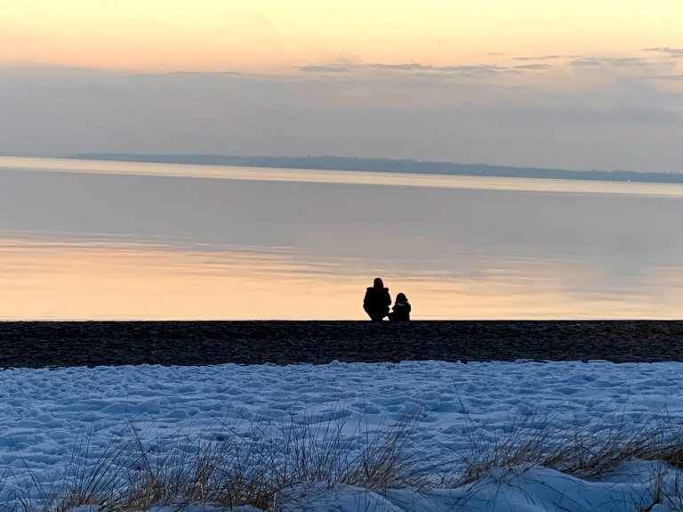 A flurry of people were at the beach waiting to see the “Christmas Star”, the alignment of Jupiter and Saturn. The evening was still. The sunset blissfully diffused through late afternoon haze, caused us all to wait and wonder. Would we be able to see through to the nighttime sky? A mother and daughter walked about together, enjoying the moment, huddled close in awe, hope and love of the life they shared.