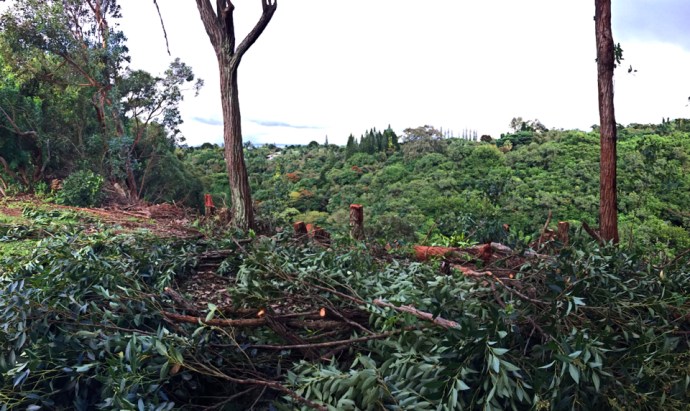 Fox and I had just cleared a number of trees from the side of the gulch.